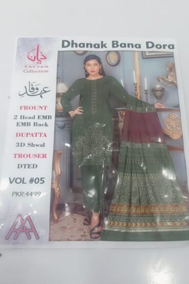 DHANAK BANA DORA (NORA NAZAR) 2 HEAD EMB EMB BACK WITH 3D SHWAL(TROUSER DTED) VOL # 17