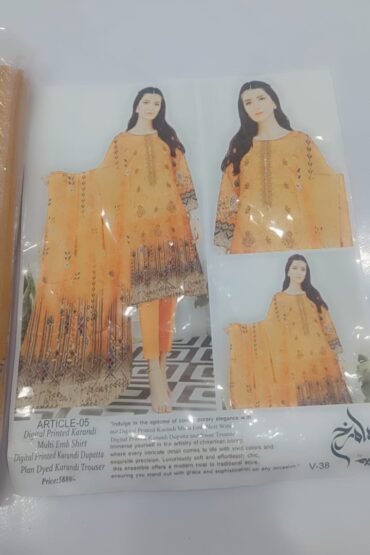 ARTICLE -05 DIGITAL PRINTED KRANDI MULTI EMB SHIRT WITH DIGITAL KARANDI DUPATAAMD PLAIN DYED TROUSER